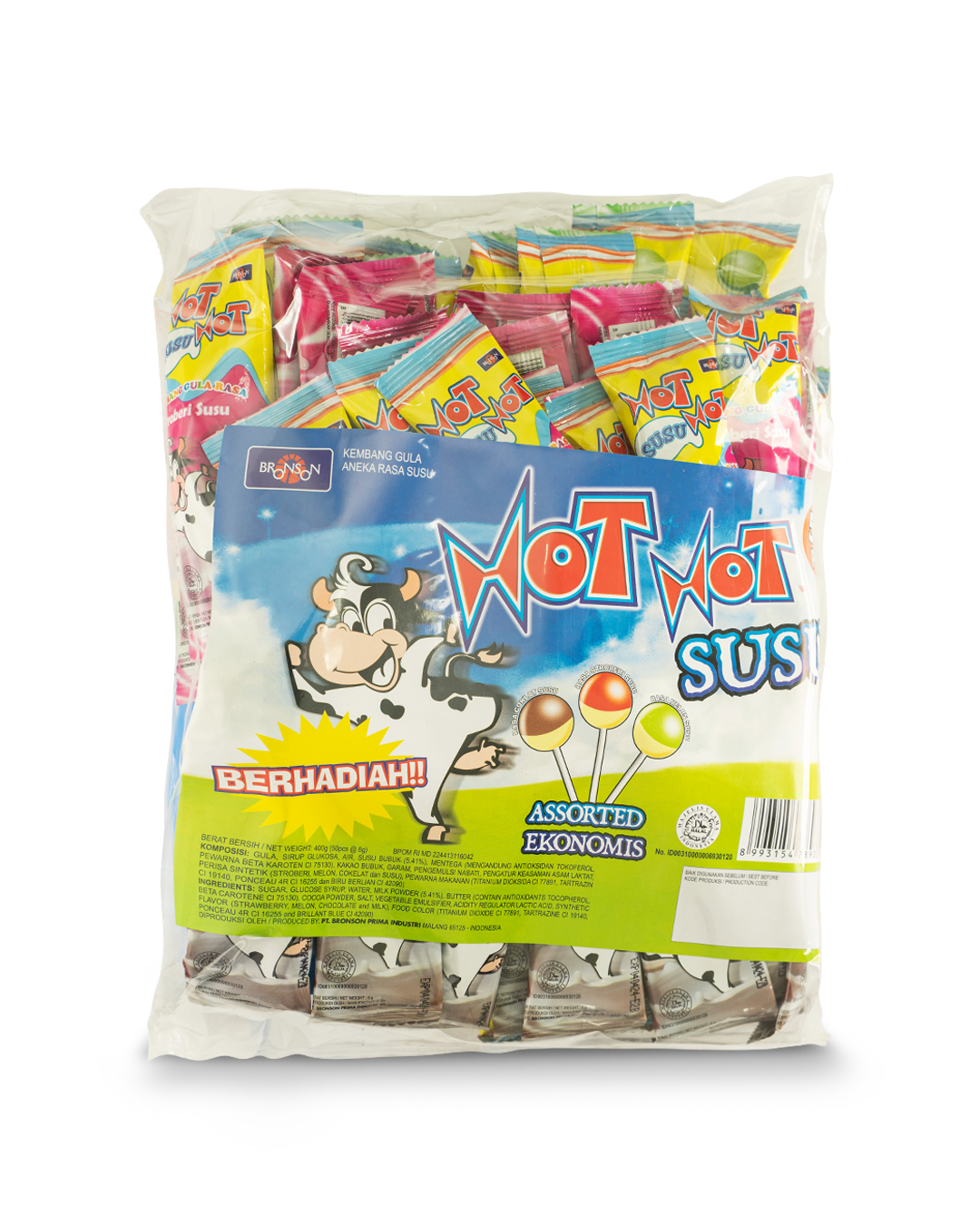 | HOT HOT SUSU BALL ASSORTED KANTONGAN | Assortment of Chocolate Milk, Melon Milk, and Strawberry Milk-flavored Hard Candy Ball Lollipops | 7.2 | 6x(50pcs x 7.2g) |