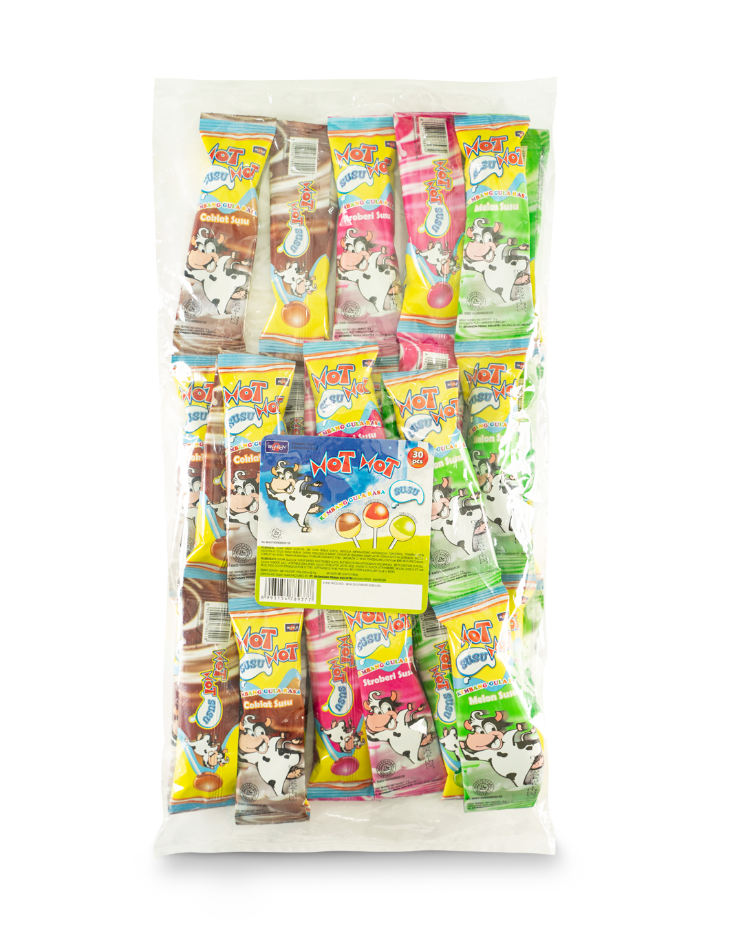 | HOT HOT SUSU BALL ASSORTED RENCENG | Assortment of Chocolate, Melon and Strawberry Real Milk-flavored Hard Candy Ball Lollipops | 7.2 | 4x(30pcs x 7.2g) |